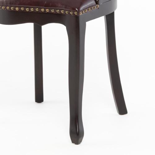 背もたれから座面にかけて、真鍮カラーの鋲(スタッズ)を一つひとつ手作業で打ち込みました。クラシックな高級感をより一層引き立てます。