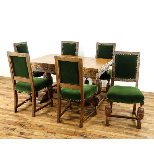 英国アンティークらしいどっしりとした重厚感のあるダイニングセット。
