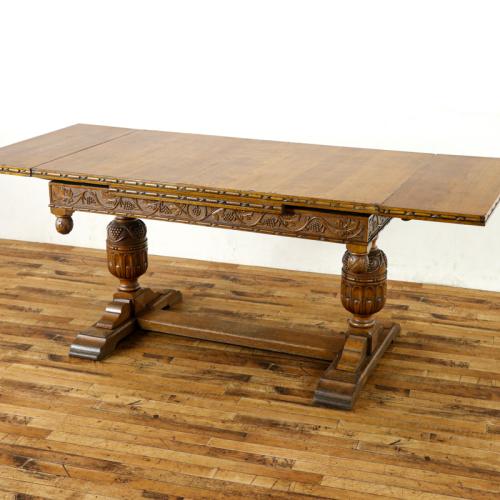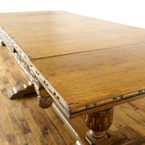 ダイニングテーブルは拡張が可能なアンティークでは定番とも言えるドローリーフテーブルで