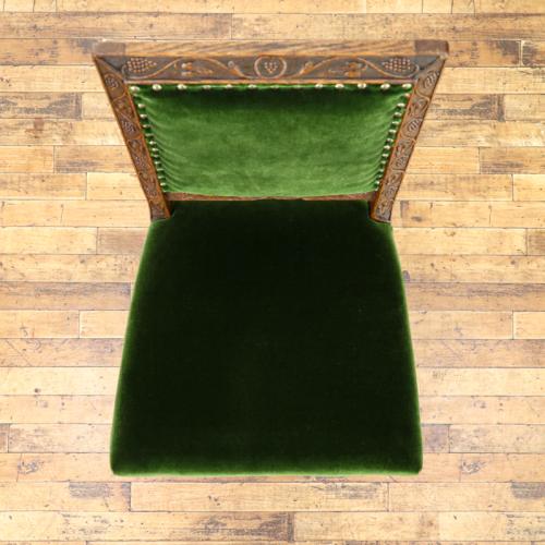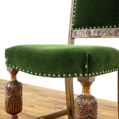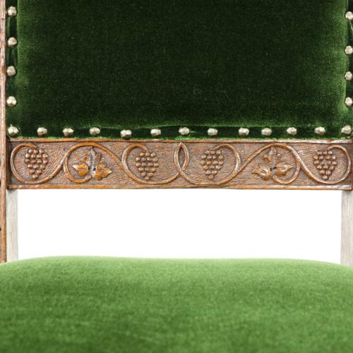 チェアにも同様に繊細な彫刻がなされいて、背もたれにまでクッションがついているモデルは