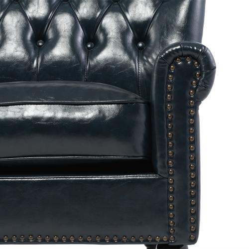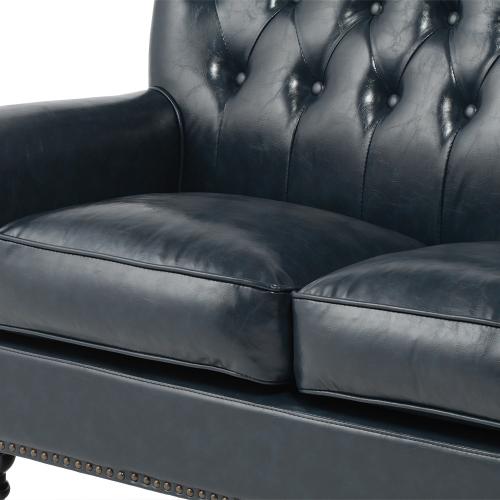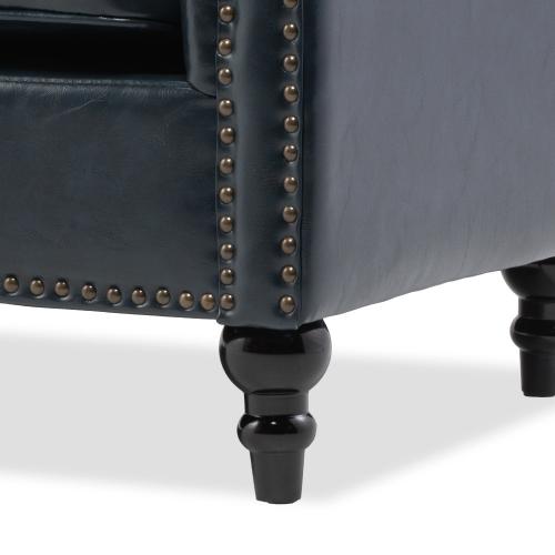 背もたれなどに施されたボタン留はクラシックな美しさがあり、単鋲の鋲飾りはデザインのアクセントになります。