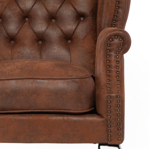 イギリスの伝統的なチェスターフィールドソファを現代の技術で再構築したこのソファは、ハイバックのデザインが快適な座り心地を提供し、
