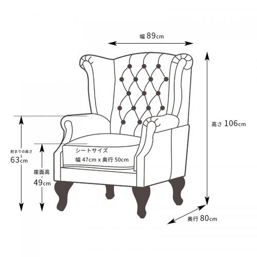 スタイリッシュなフォルムと上品な猫脚、そして美しいボタン留の加工と単鋲のみで仕上げた鋲飾りが、エレガントな印象を深めます。