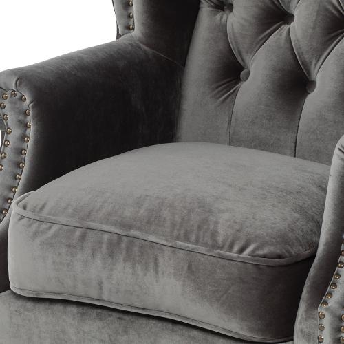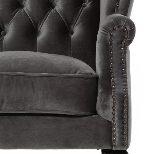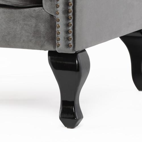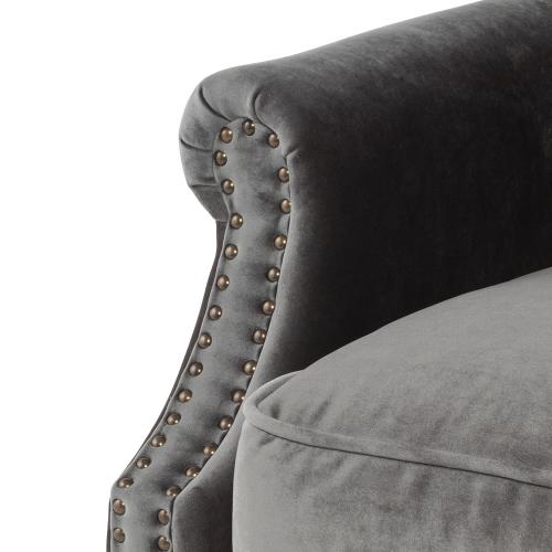 スタイリッシュなフォルムと上品な猫脚、そして美しいボタン留の加工と単鋲のみで仕上げた鋲飾りが、エレガントな印象を深めます。
