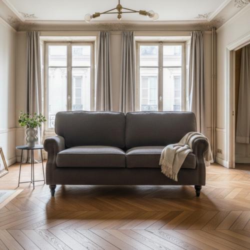 ヨーロッパでのバイヤー経験を持つアンティークのプロフェッショナル達が日本の住空間を考慮し設計開発した 2.5人掛けソファ。