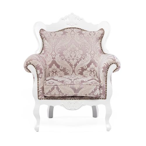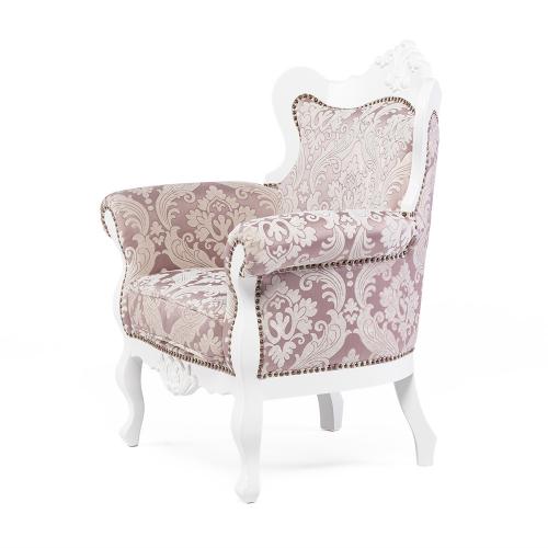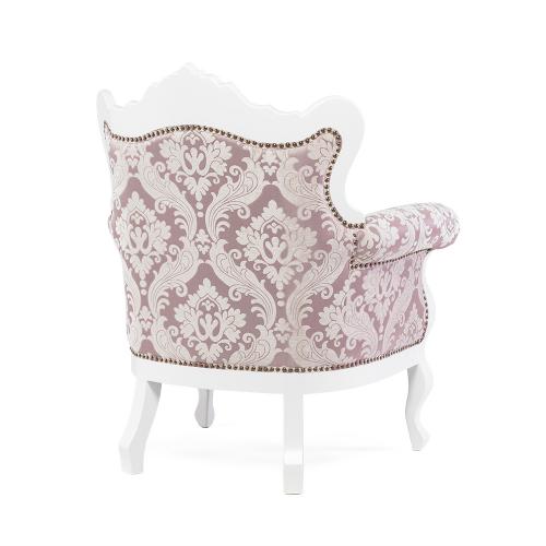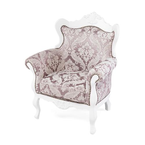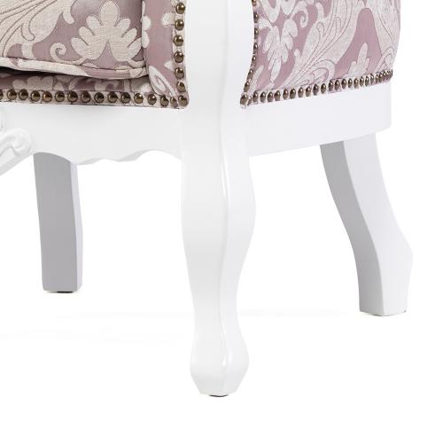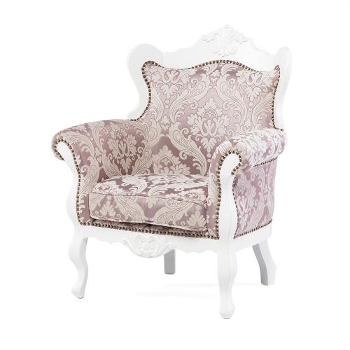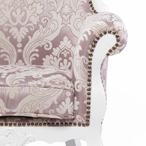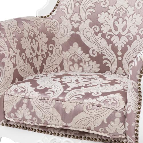 日本の住空間に合わせたコンパクトソファ エレガントなロココ調ソファロココ調 1人掛けソファ ホワイトxピンクダマスク 布地 E1166-1-18F68
