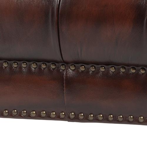 ブラウンの本革に、濃淡のあるアンティーク加工が施されており、使い込まれたような深みのある風合いが表現されています。