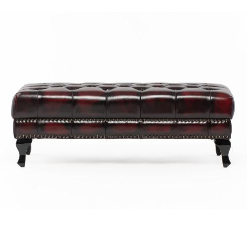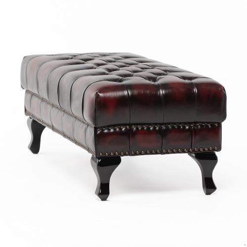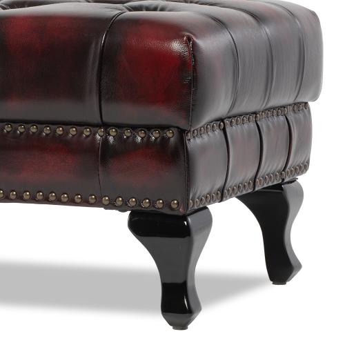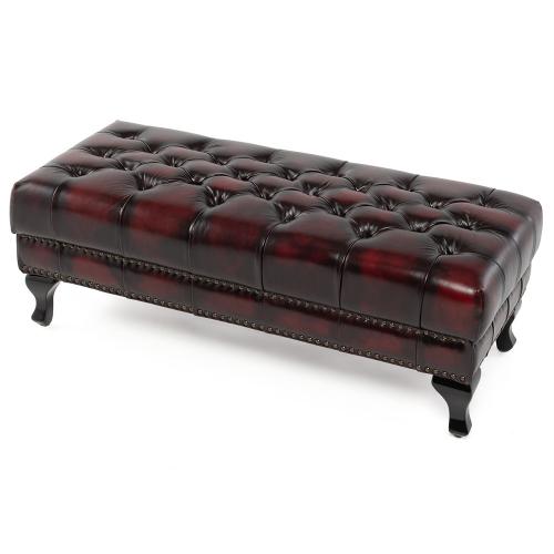 英国の伝統的なスタイルを取り入れたチェスターフィールドのオットマン・ベンチ(スツール)です。クラシックで重厚感のあるデザインが特徴で、リビングやベッドルーム、あるいは店舗の什器としても映える一品ですね。