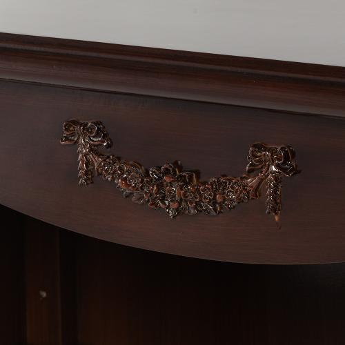 猫脚のディテールがロマンチックな姫系スタイルを演出し、木製のブラウンカラーが落ち着いた印象を与えます。