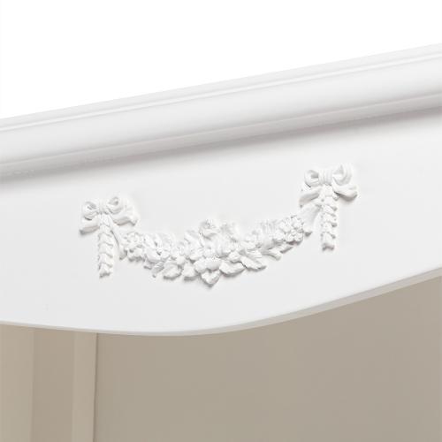 天板下と幕板部分には、華やかなリボンと草花のレリーフをあしらいました。